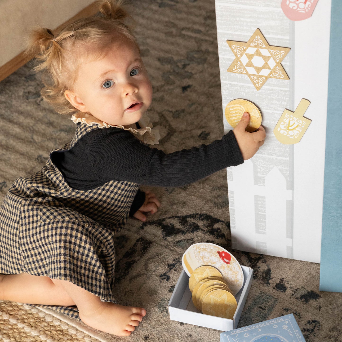 Get ready to Make It Festive with our Hanukkah Decor Kit! Designed to enrich your child’s playhouse with the joy of the holiday season, this kit transforms their space into a vibrant celebration that supports imaginative play and cultural understanding. Featuring a cheerful "Happy Hanukkah" sign with a beautiful menorah, along with playful gelt, colorful dreidels, and shimmering snowflakes, this kit encourages creativity and hands-on learning. The iconic Star of David and delightful Sufganiyot decorations spark conversations about traditions, fostering social skills and cultural appreciation.