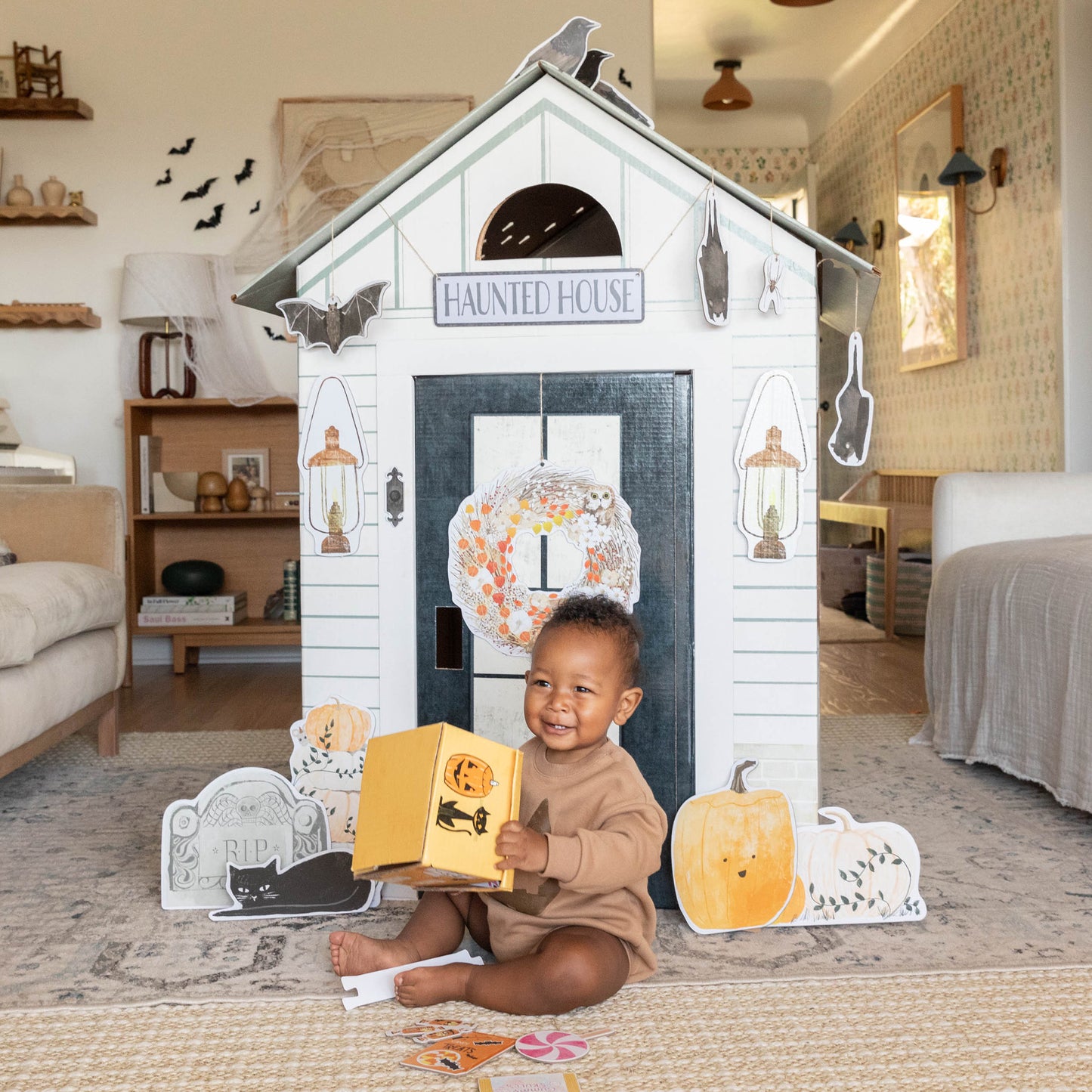 Discover Make It Cute's eco-friendly decor kits, where creativity knows no bounds! Our collection of Play Decor™ is designed to transform our playhouses into extraordinary adventures, enriching your child's open-ended play experience. Each decor kit is hand-illustrated and crafted from sustainable materials, ensuring the fun is as kind to the environment as it is to your child's imagination. Whether adding a warm, welcoming touch to your child's playhouse or conjuring up a spooky Halloween scene, our kits offer endless possibilities for developmental growth and joy. Dive into a world where playtime meets creativity, and every theme brings a new opportunity for exploration and fun!